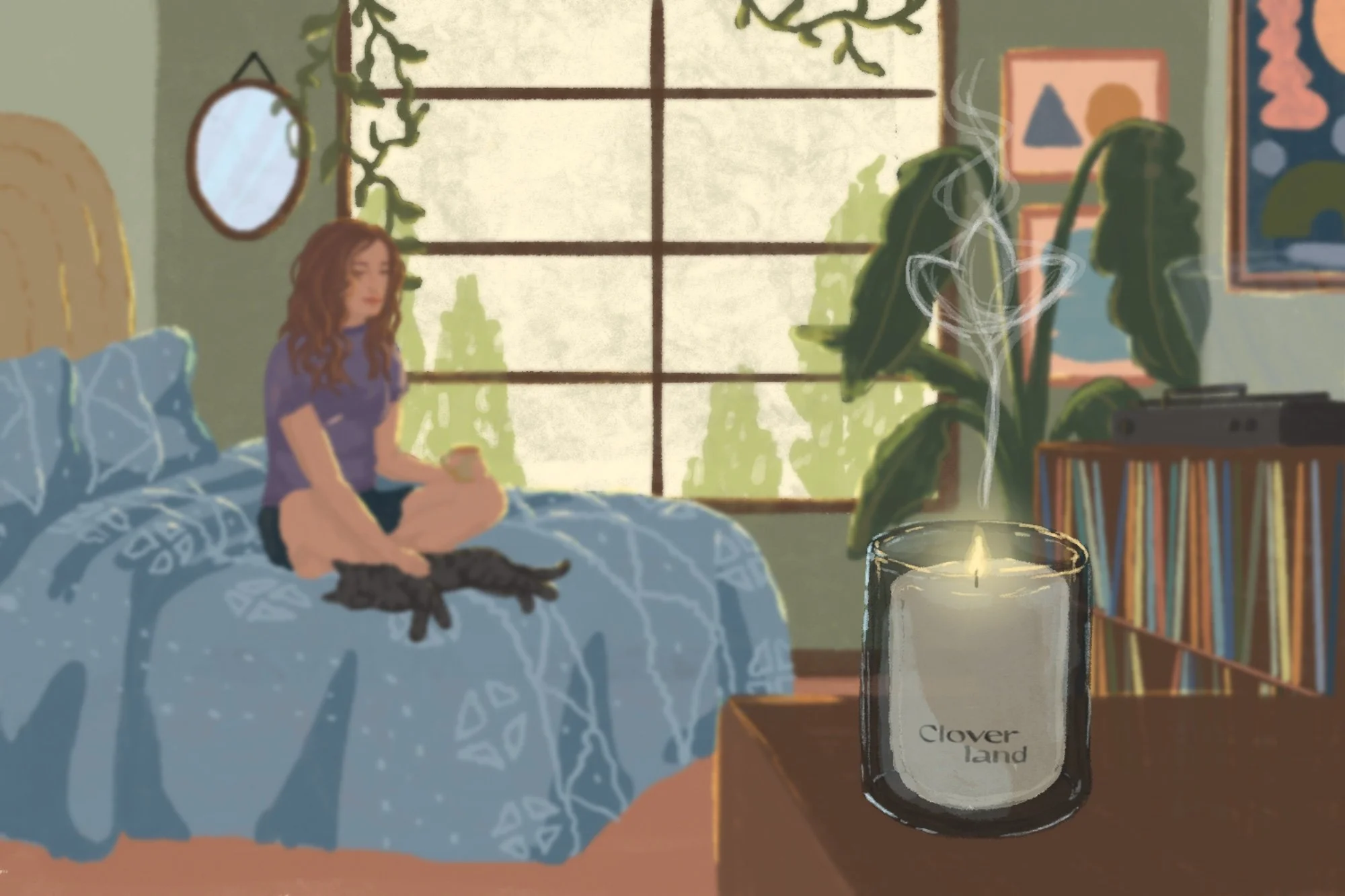 I created three immersive banner illustrations for the Cloverland website. Each showcases a different expression of relaxation and coziness, inviting website visitors to imagine their candle in the peaceful context of their own home. Each illustration depicts a different time of day: morning, afternoon, and evening).
